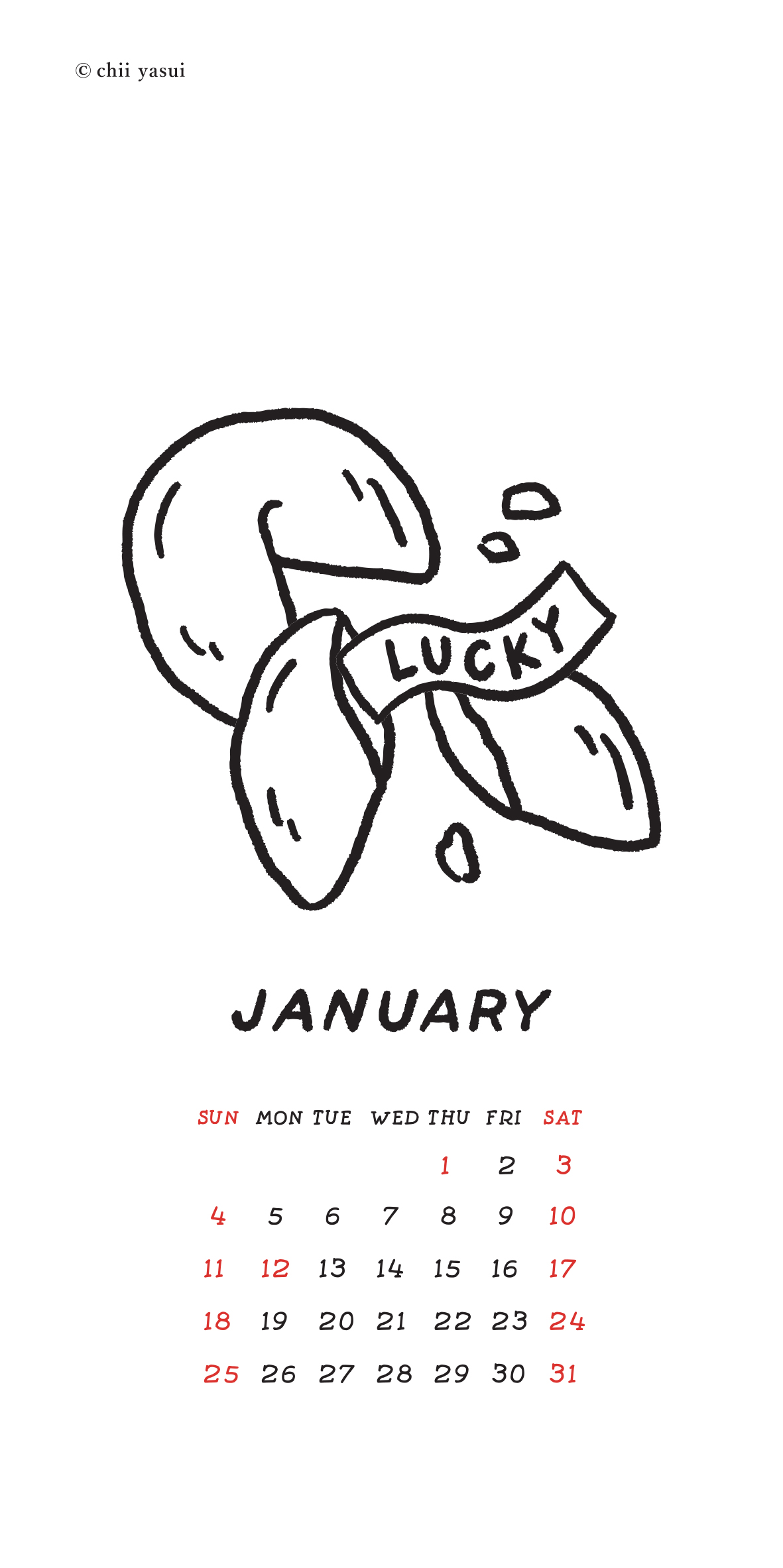 chii yasui イラストレーター グラフィックデザイナー CONTACT : chii.konishi@swgarden.jpお仕事のご相談はメールアドレスまでご連絡ください Calendar FREE download !!! 毎月末に更新 ※注意※ スマホの壁紙のみ使用可 202601Download